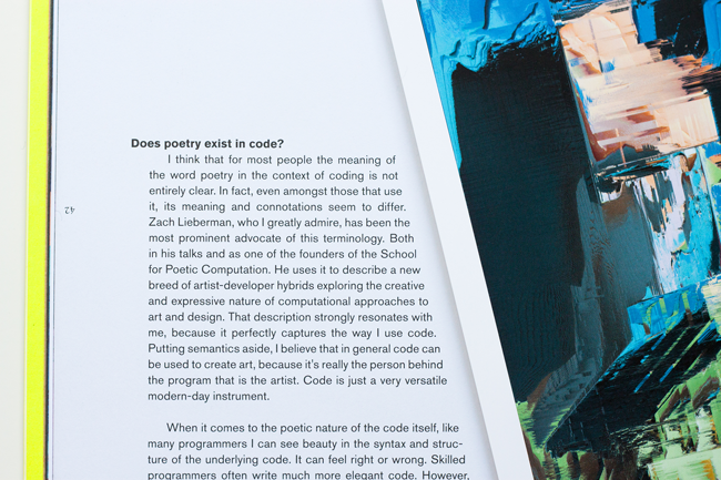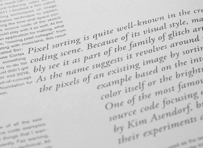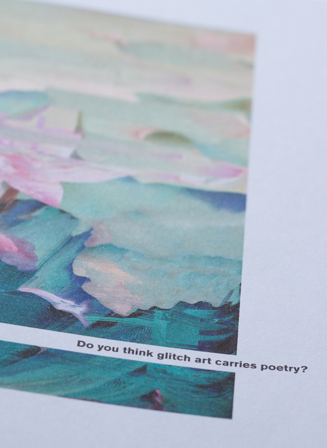 A very inspiring part of the process was my interview with Amnon Owed, who is a Computational Designer and currently developing a program for Processing that generates beautiful glitchart.